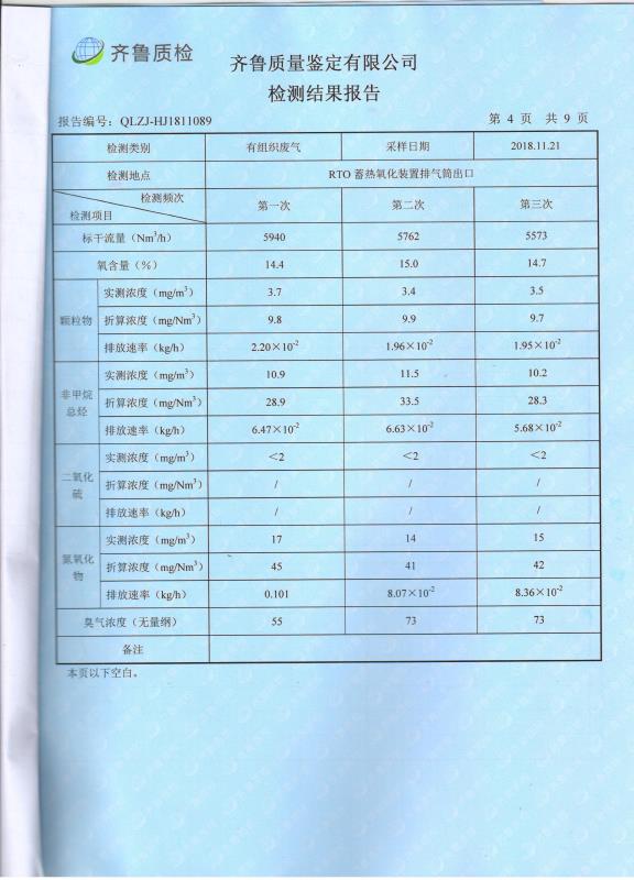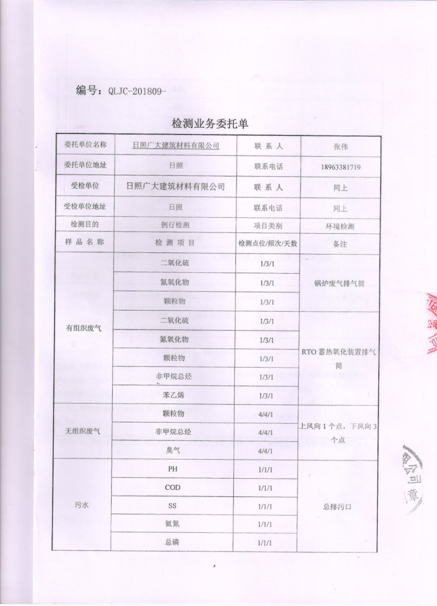 日照廣大建筑材料有限公司第四季度檢測報告